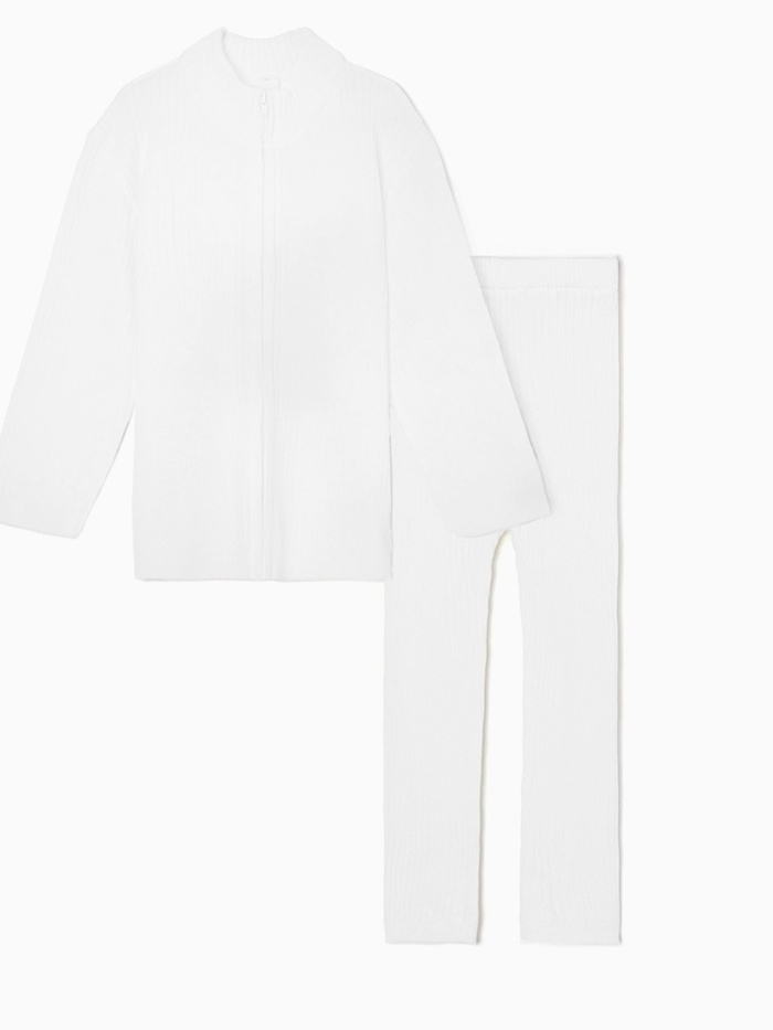 Костюм детский вязаный (кофта и брюки) MINAKU, цвет белый, рост 134 см