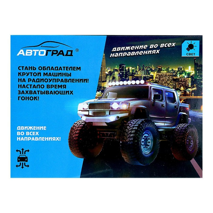 Радиоуправляемая машина-вездеход способна проехать там, где для легковых авто дороги нет! Большие колёса и высокая пружинная подвеска помогут преодолеть любые препятствия.