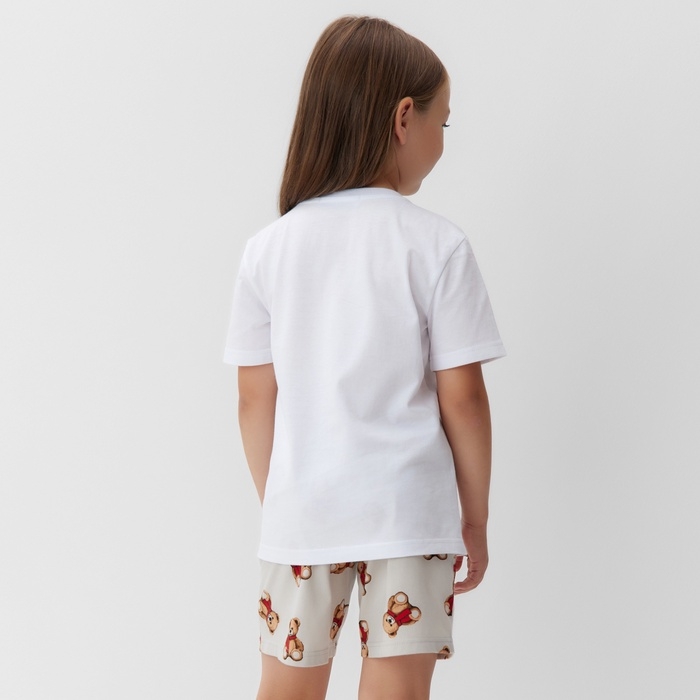 Пижама детская (футболка и шорты) KAFTAN "Мишка в шарфе" размер 36 (134-140 см)