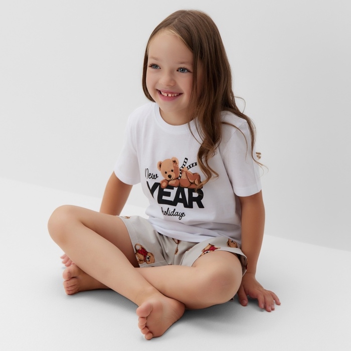 Пижама детская (футболка и шорты) KAFTAN "Мишка в шарфе" размер 30 (98-104 см)
