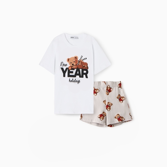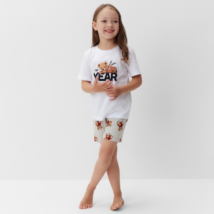 Пижама детская (футболка и шорты) KAFTAN "Мишка в шарфе" размер 34 (122-128 см)