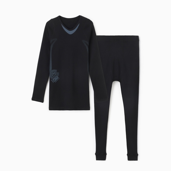 Комплект мужской (фуфайка кальсоны) термо, цвет чёрный/синий, р-р 48