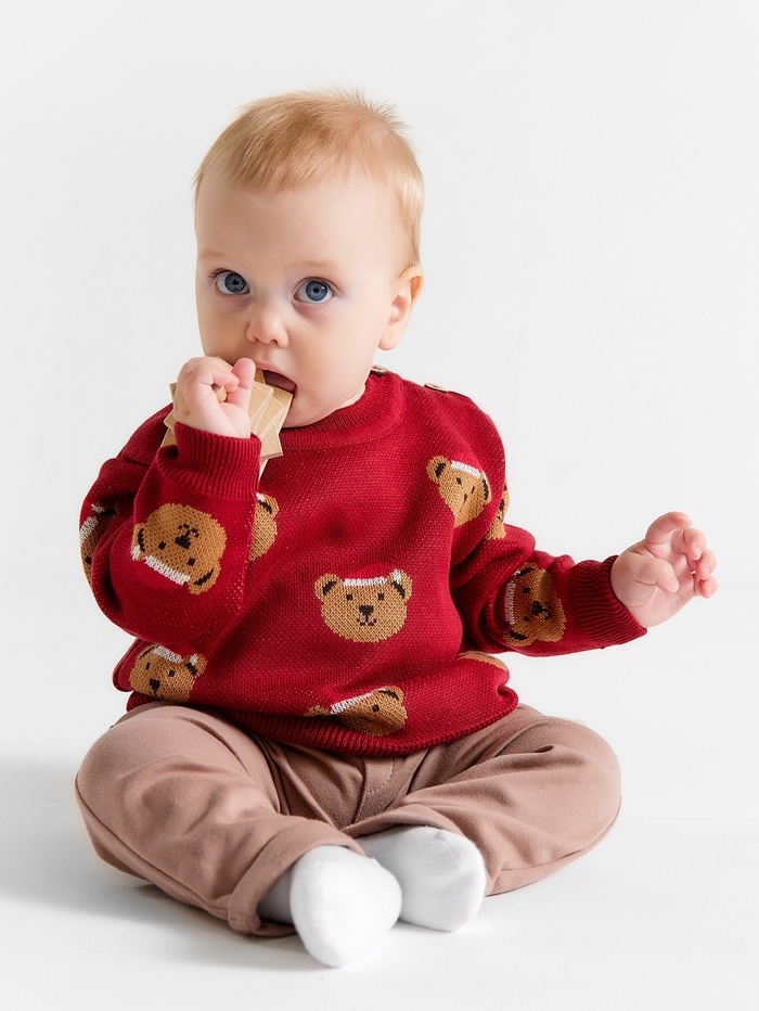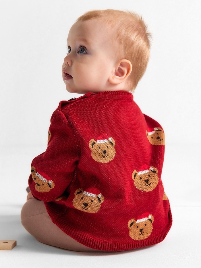 Джемпер вязаный новогодний Крошка Я "Новогодние медвежата" рост 68-74 см, цвет красный