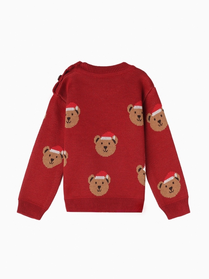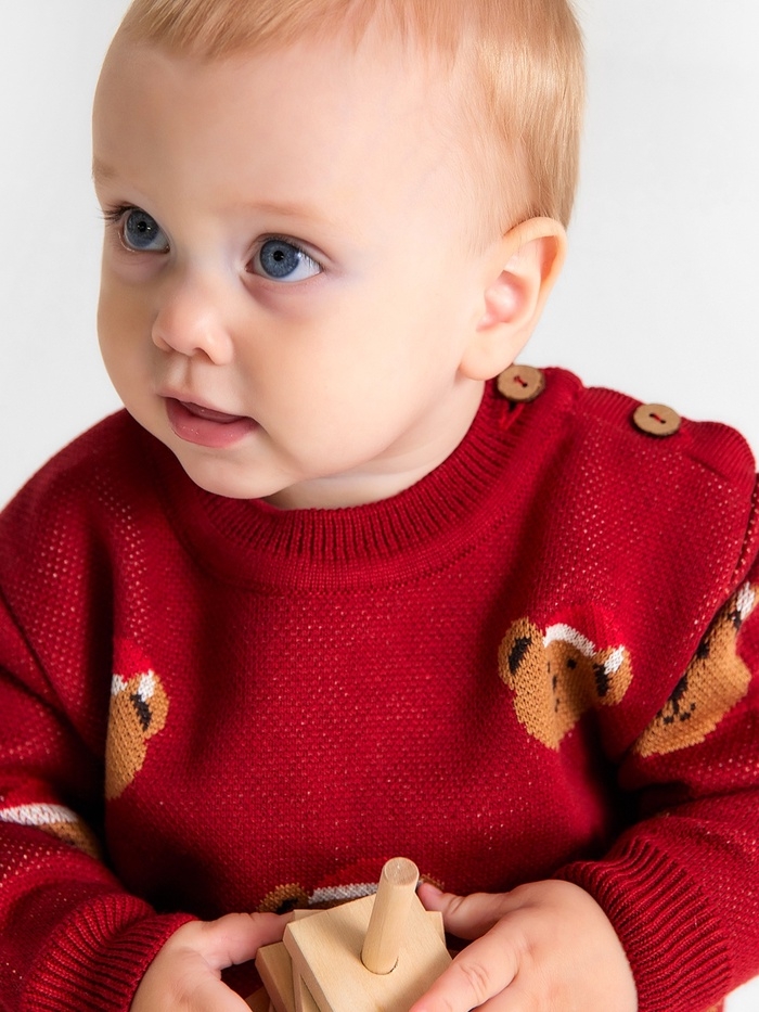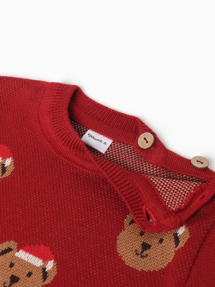 Джемпер вязаный новогодний Крошка Я "Новогодние медвежата" рост 92-98 см, цвет красный