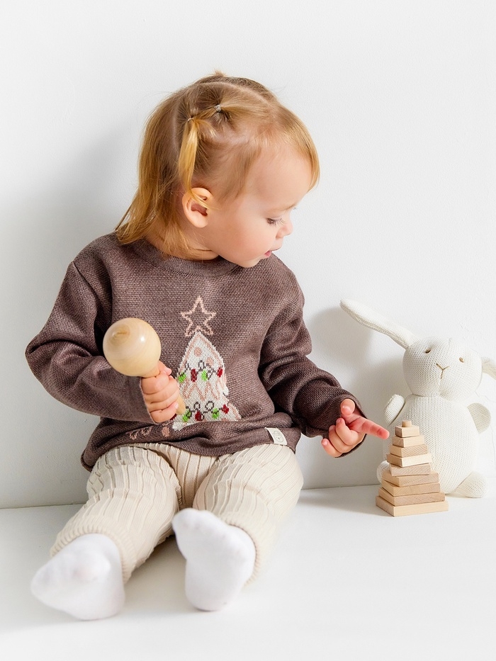Джемпер вязаный новогодний Крошка Я "Новогодние игрушки" рост 86-92 см, цвет коричневый