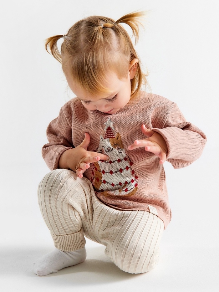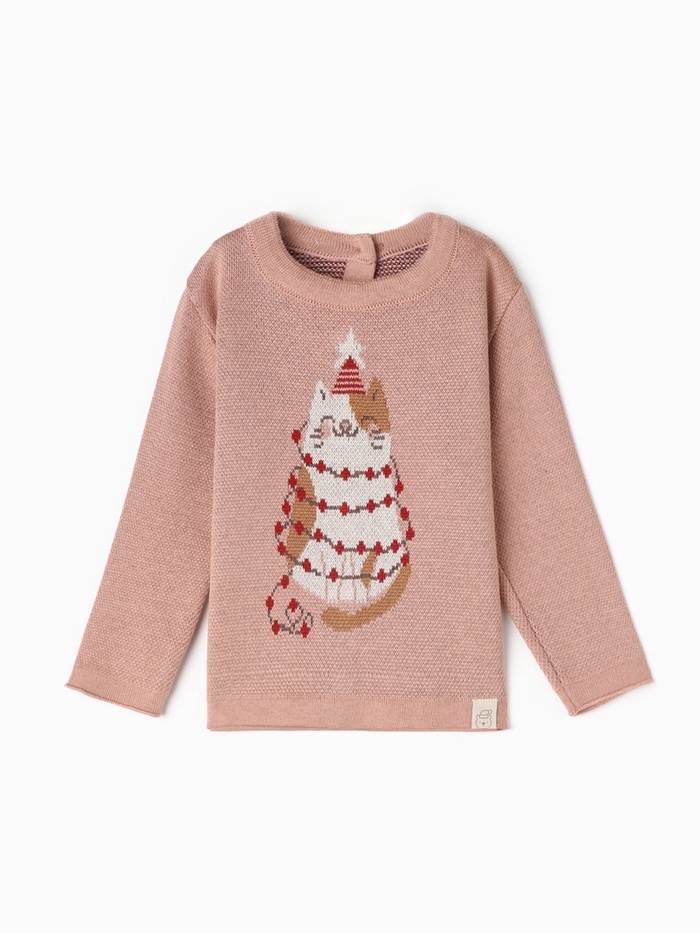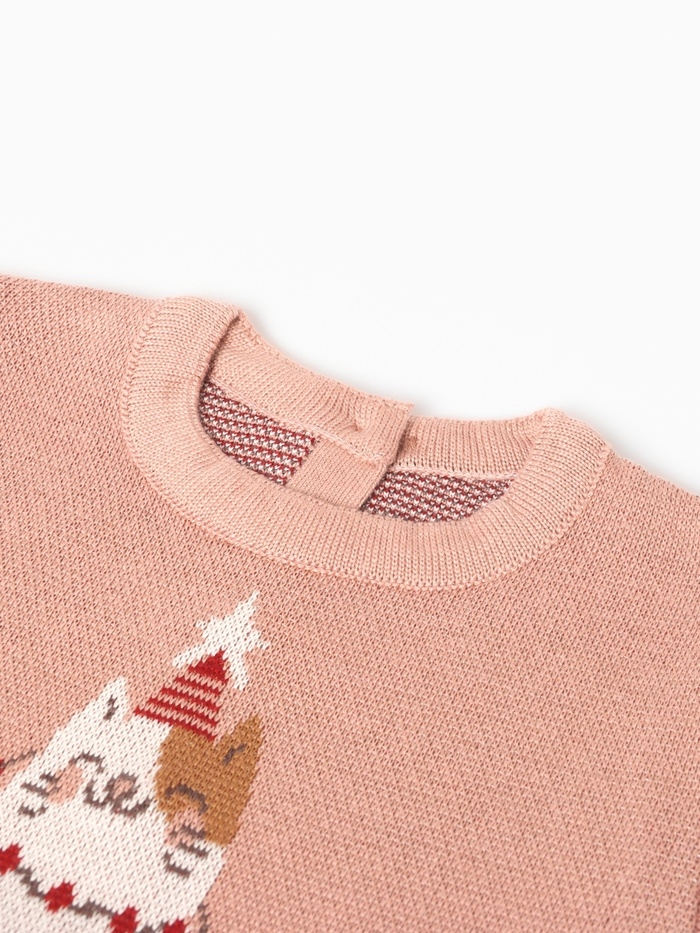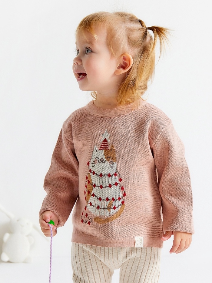Джемпер вязаный новогодний Крошка Я "Зимний котик" рост 80-86 см, цвет розовый