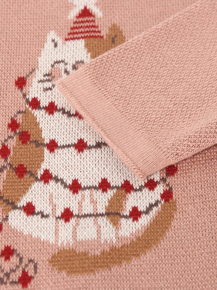 Джемпер вязаный новогодний Крошка Я "Зимний котик" рост 86-92 см, цвет розовый