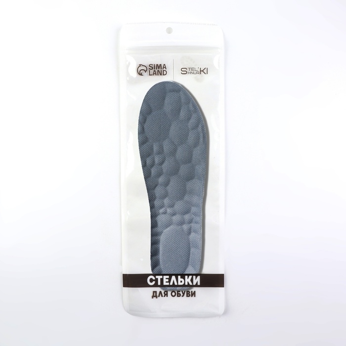 Стельки для обуви, амортизирующие, р-р RU до 44 (р-р Пр-ля до 45), 28 см, пара, цвет серый