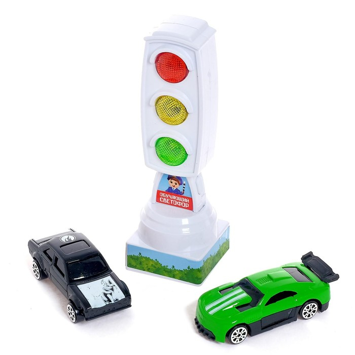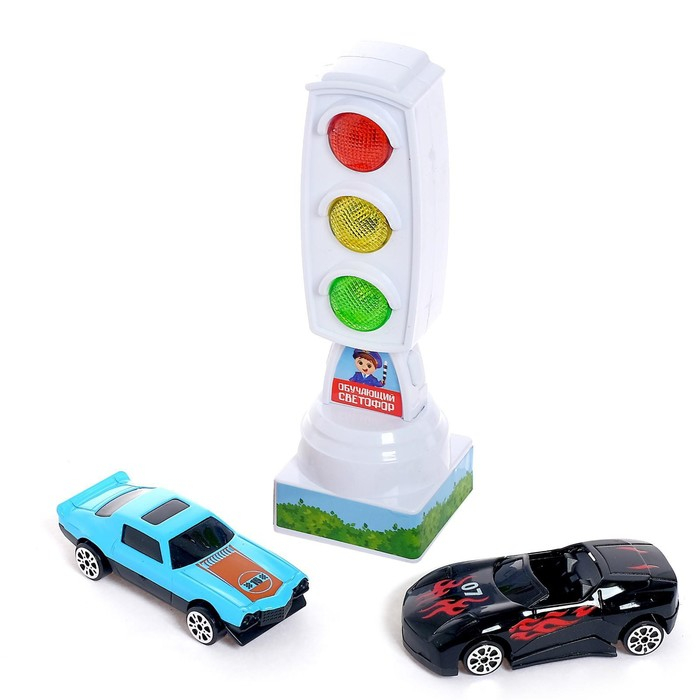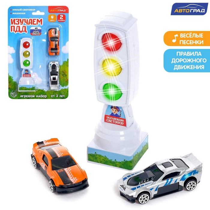 Светофор с машинками «Изучаем ПДД», световые эффекты, русский чип, МИКС