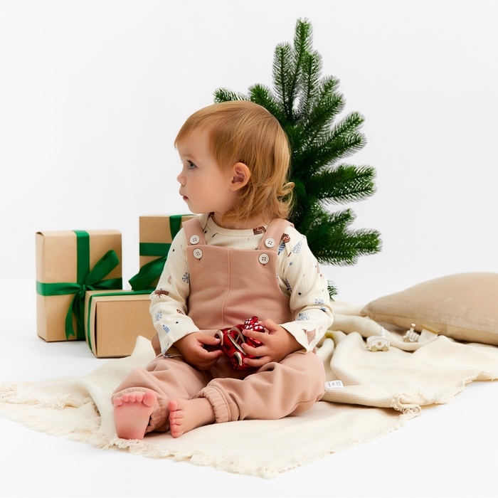 Набор (боди и комбинезон) Крошка Я "Новогодние игрушки", рост 74-80 см