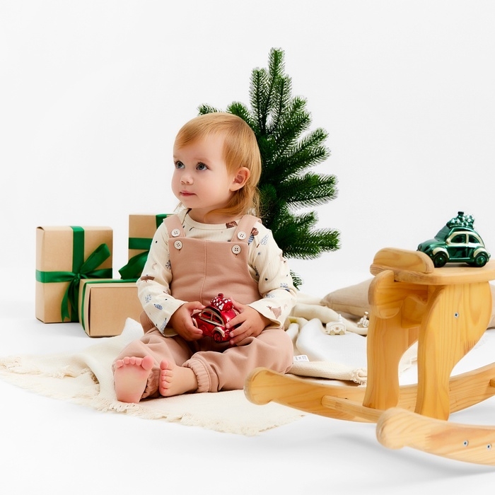 Набор (боди и комбинезон) Крошка Я "Новогодние игрушки", рост 80-86 см