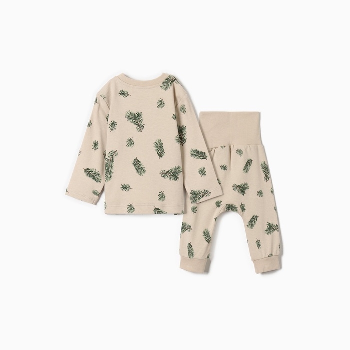 Костюм (штанишки и кофточка) Крошка Я "Еловые веточки", рост 62-68 см, бежевый