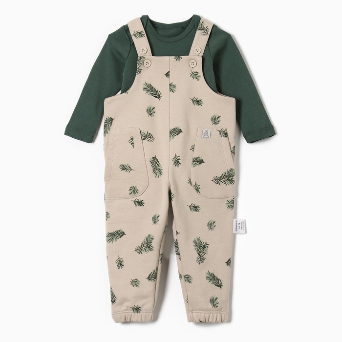 Набор (боди и комбинезон) Крошка Я "Еловые веточки", рост 62-68 см