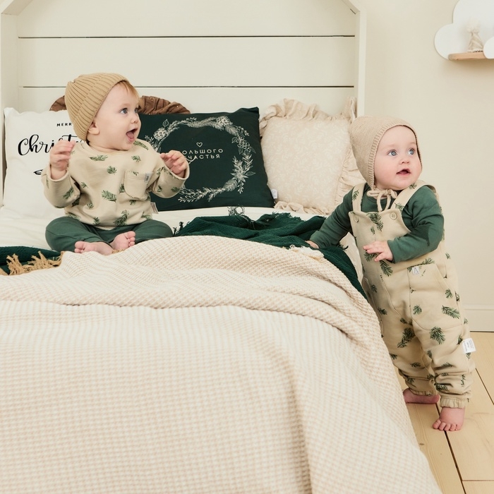 Набор (боди и комбинезон) Крошка Я "Еловые веточки", рост 74-80 см