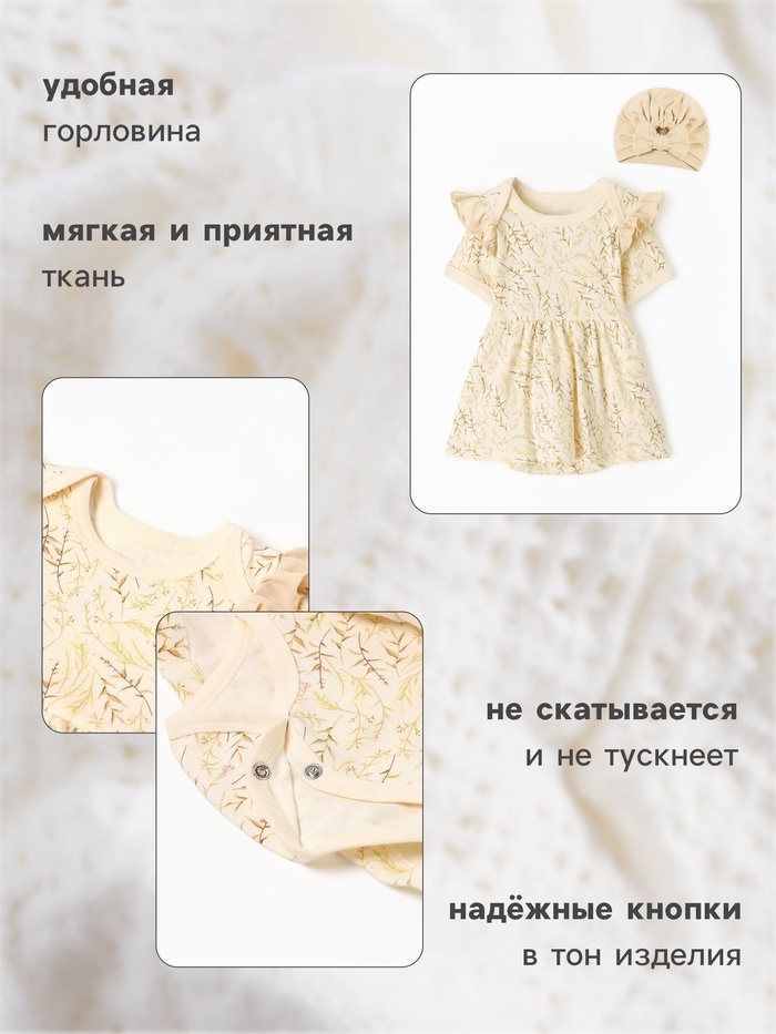 Боди-платье с шапочкой детское MINAKU "Nature", цвет бежевый, рост 74-80 см