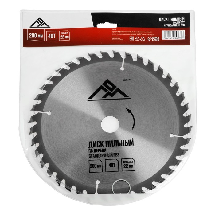 Диск пильный по дереву ЛОМ, стандартный рез, 200 х 22 мм, 40 зубьев