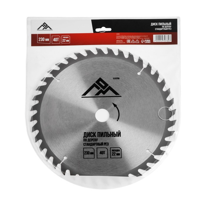 Диск пильный по дереву ЛОМ, стандартный рез, 230 х 22 мм, 40 зубьев