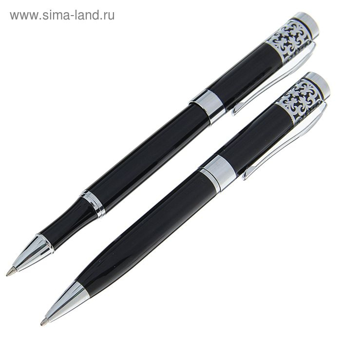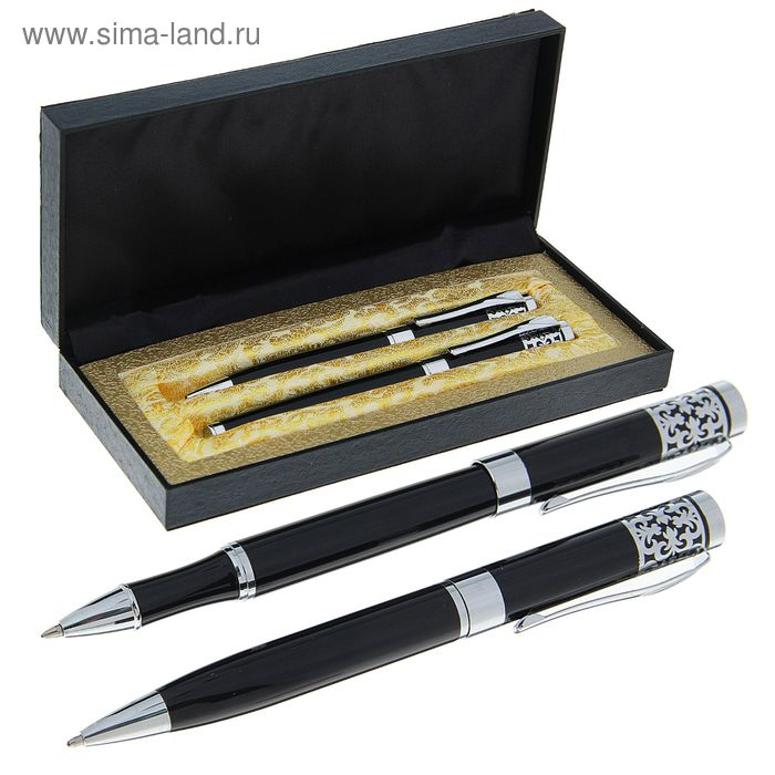 Ручки шариковые подарочные "Гравюра" 2 штуки, в кожзам футляре