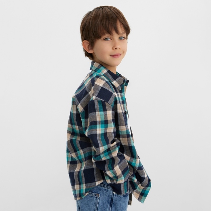 Рубашка для мальчика в клетку KAFTAN, р. 32 (110-116 см), синий