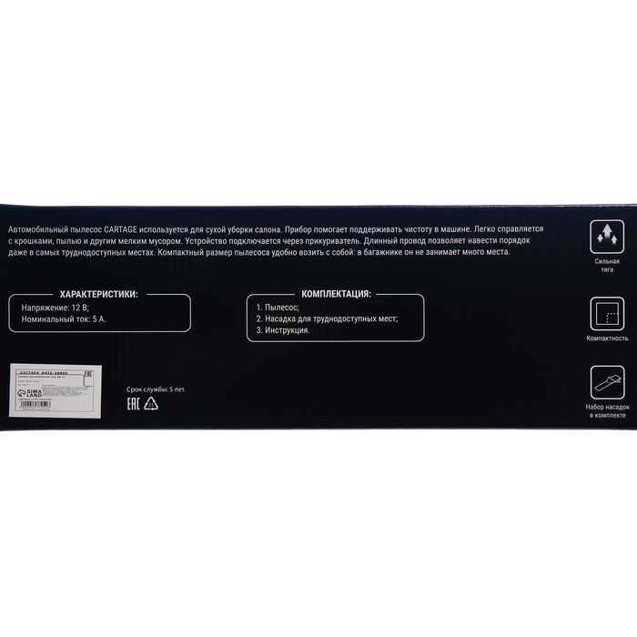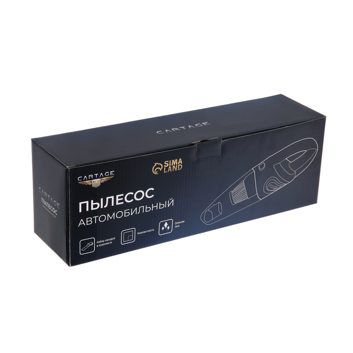 Пылесос автомобильный CARTAGE, беспроводной, 3 насадки, 120 Вт, 12 В, черный