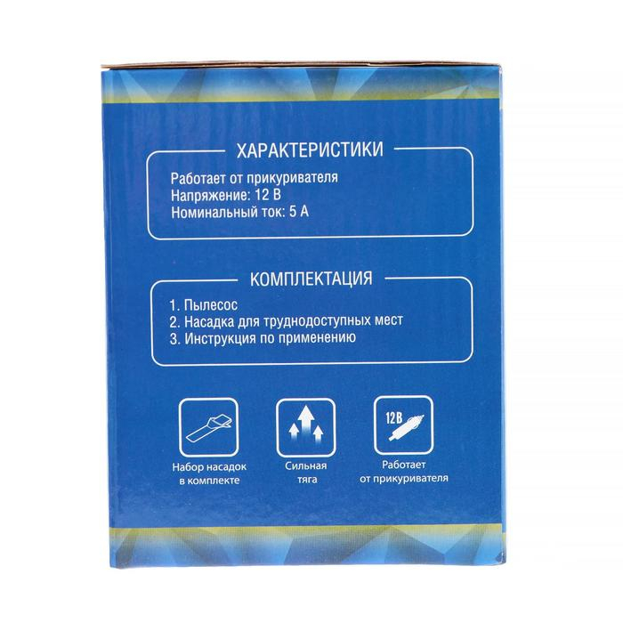 Пылесос автомобильный, 60 Вт, 12 В, белый