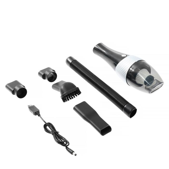 Пылесос автомобильный, беспроводной, 5 насадок, 130 Вт, 12 В, черный