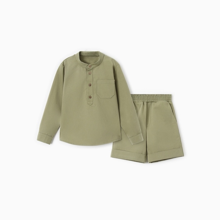 Костюм для мальчика (Рубашка и бермуды) MINAKU, цвет хаки, рост 104 см