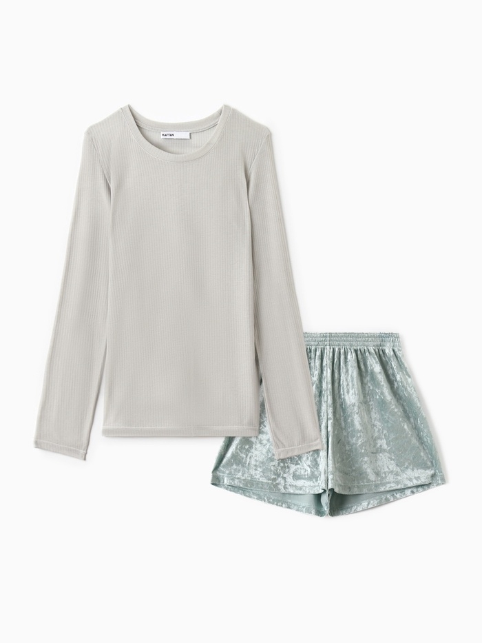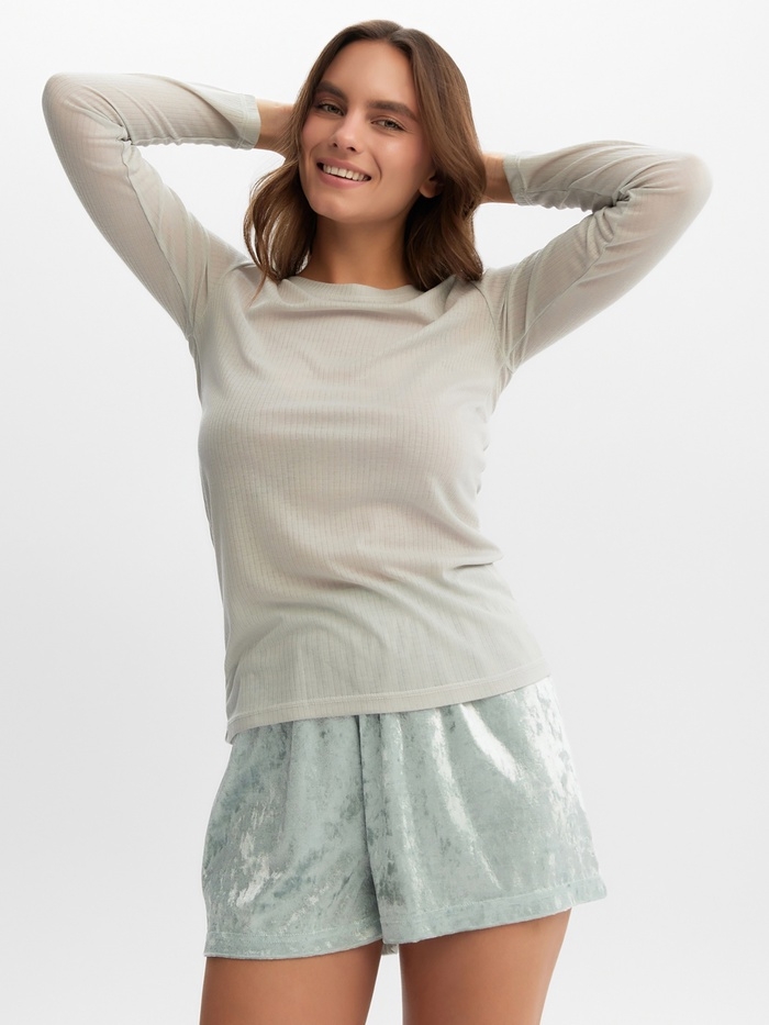 Комплект женский (лонгслив и шорты) KAFTAN "Бархат", 44-46, мята