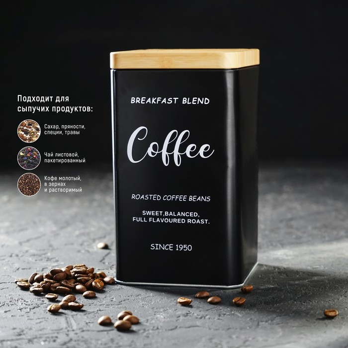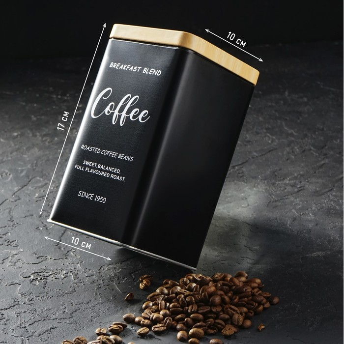 Банка для сыпучих продуктов (кофе) «Сайнс», 18×10 см, цвет чёрный