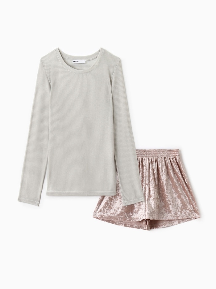 Комплект женский (лонгслив и шорты) KAFTAN "Бархат", 40-42, розовый