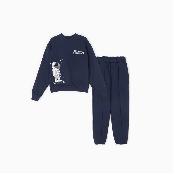 Костюм детский с начёсом (свитшот, брюки) MINAKU: astronaut, цвет синий, рост 158 см