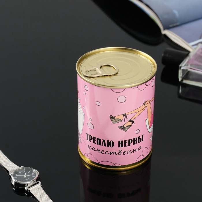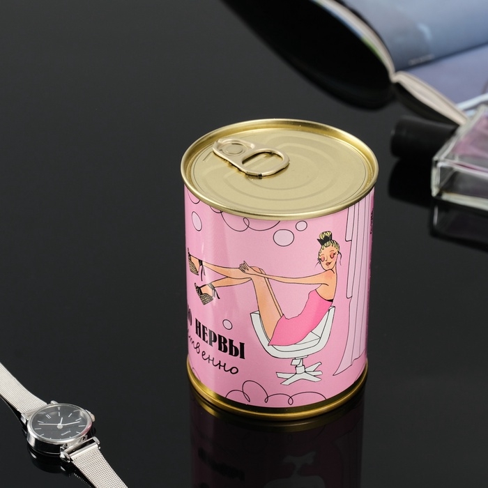 Подарочные носки в банке «Мотаю нервы качественно», (внутри носки женские, цвет белый)