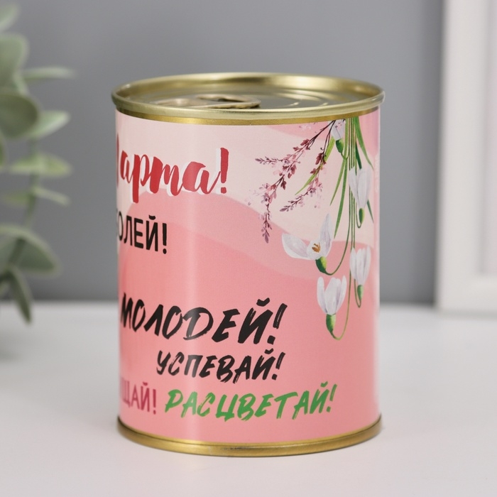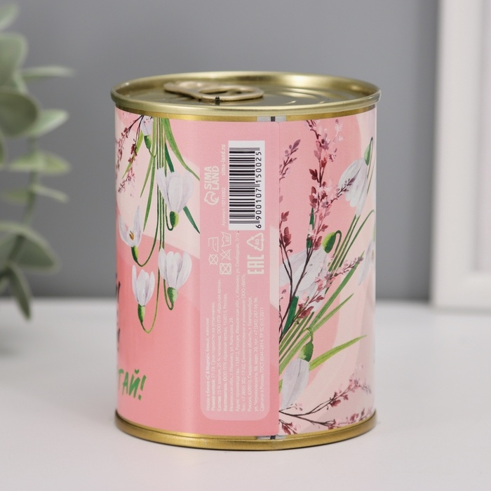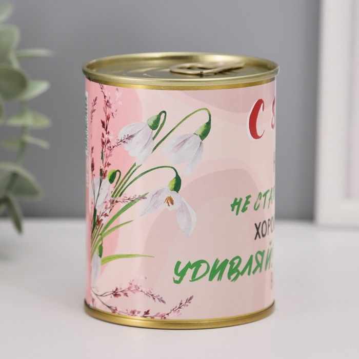 Носки в банке "С 8 Марта" (внутри носки женские, цвет белый)