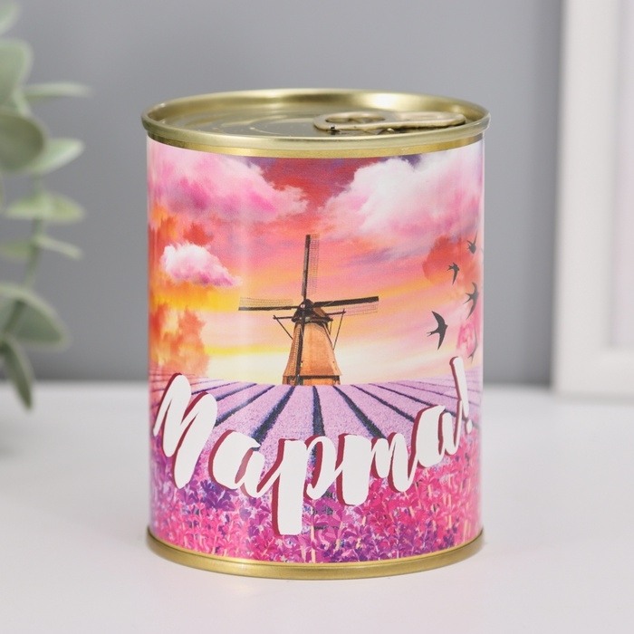 Носки в банке "С 8 Марта" (внутри носки женские, цвет белый)