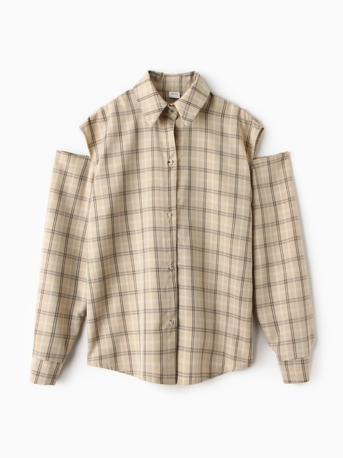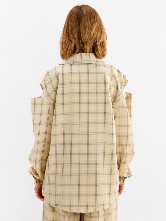 Рубашка женская MINAKU: Casual Collection цвет бежевый в клетку, р-р 52