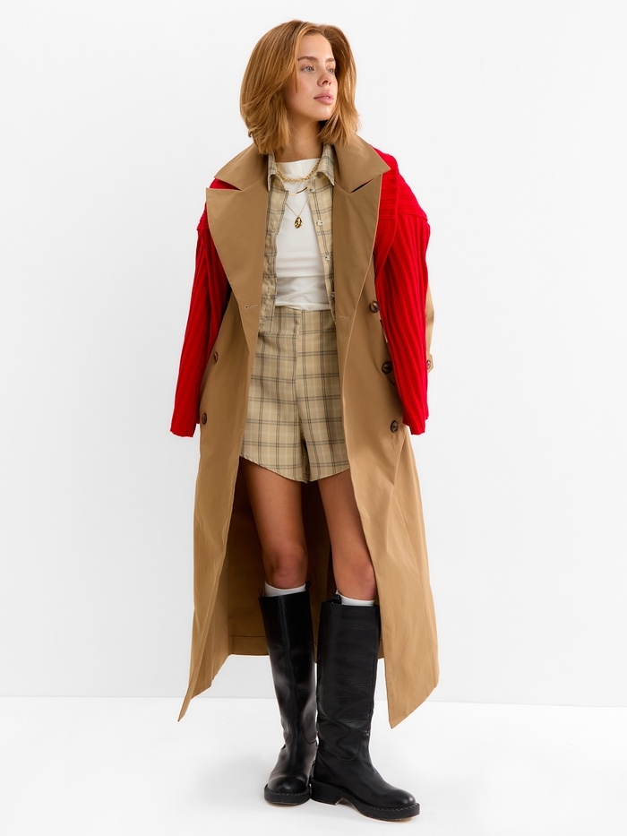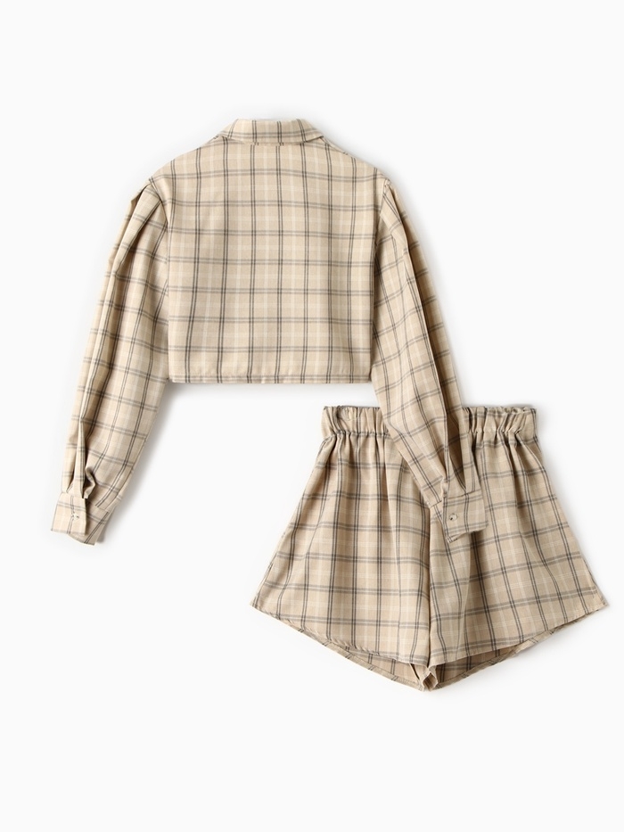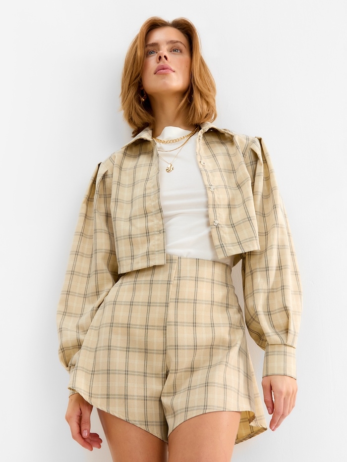 Комплект женский (блузка, шорты) MINAKU: Casual Collection цвет бежевый клетка, размер 42