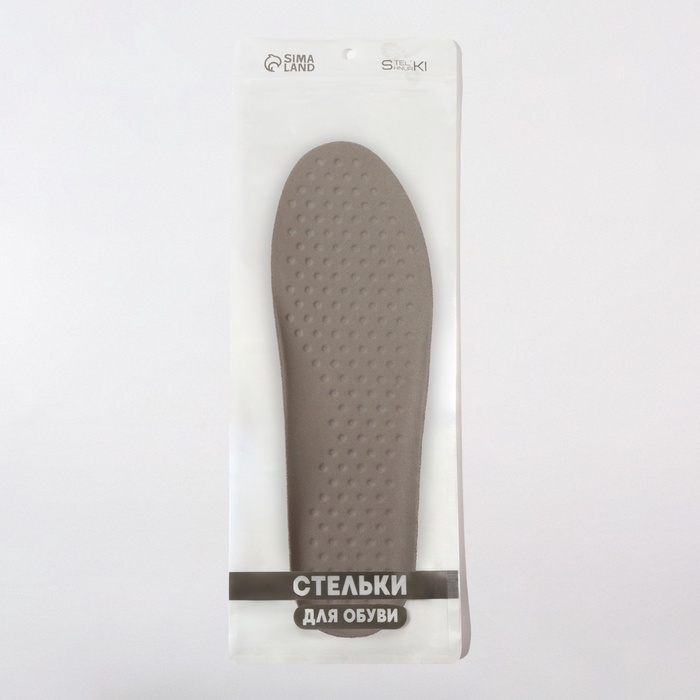 Стельки для обуви, амортизирующие, р-р RU до 44 (р-р Пр-ля до 45), 28 см, пара, цвет серый