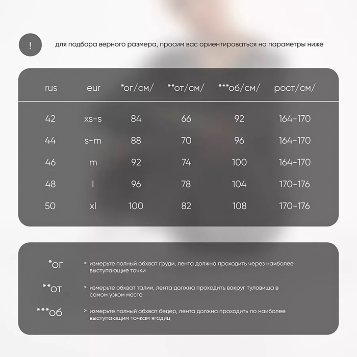 - Обхват бёдер: 96 см.