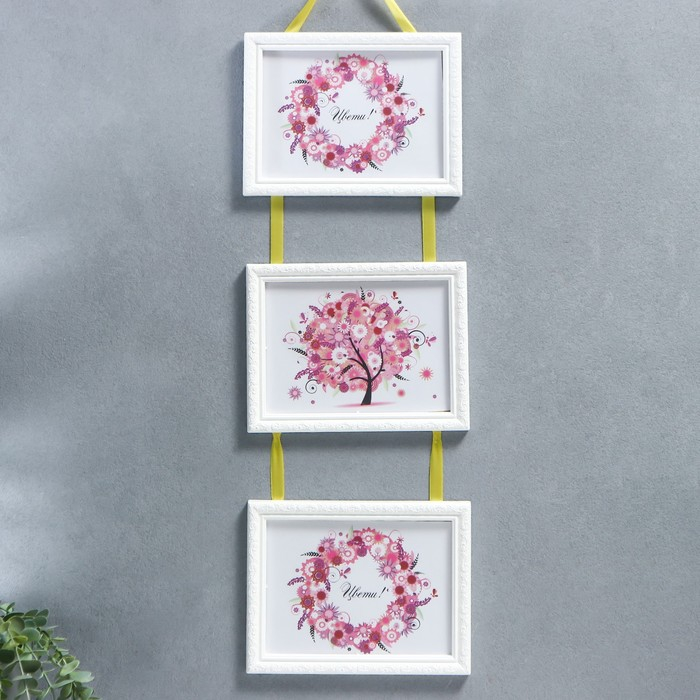 Фоторамка тройная на тесьме L-2 15х21 см белый (пластиковый экран)