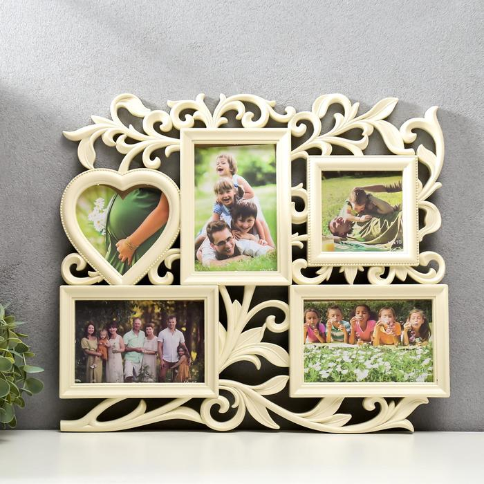 Фоторамка-Коллаж "С сердцем" на 5 фото, слоновая кость
