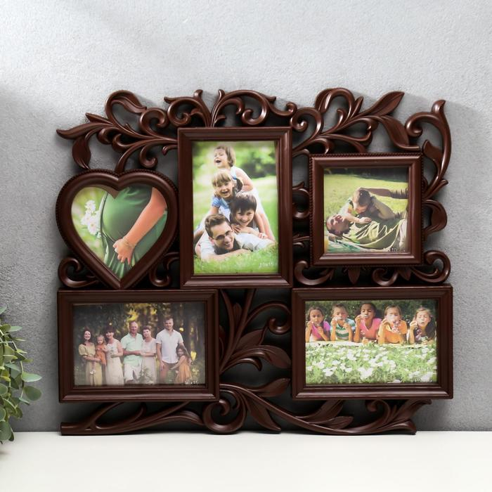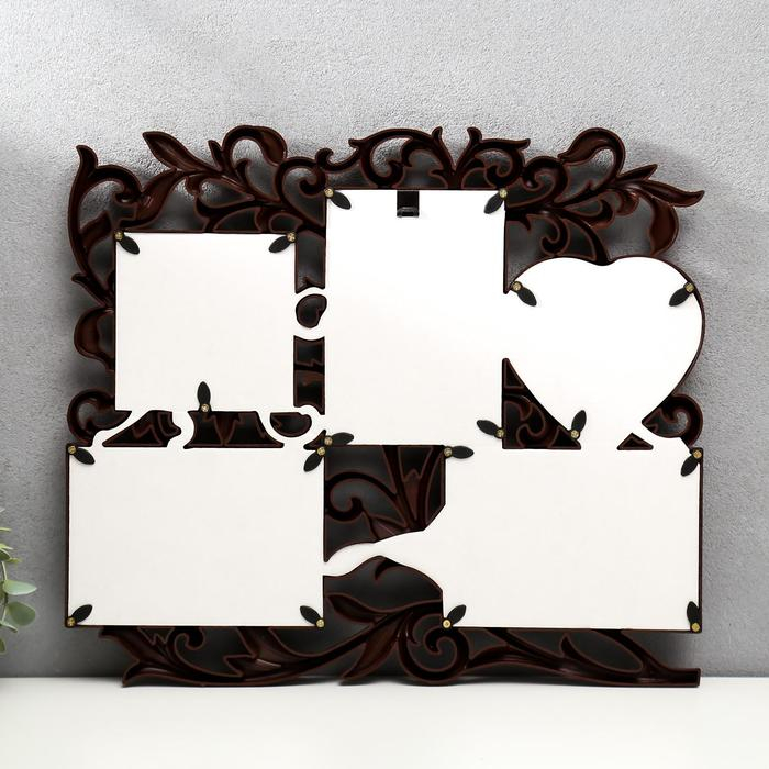 Фоторамка-коллаж "С сердцем" на 5 фото, орех (пластиковый экран)