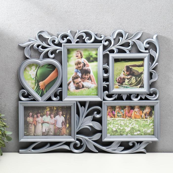 Фоторамка-коллаж "С сердцем" на 5 фото, серебро