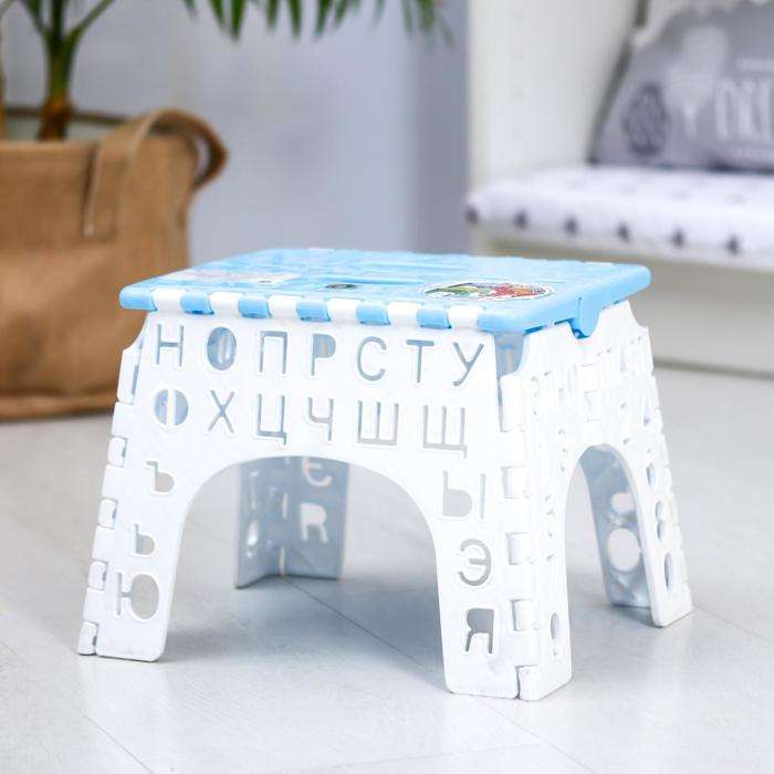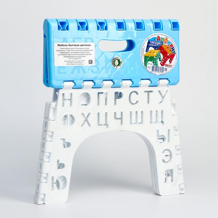 Табурет «Алфавит» складной, детский, цвет голубой/белый