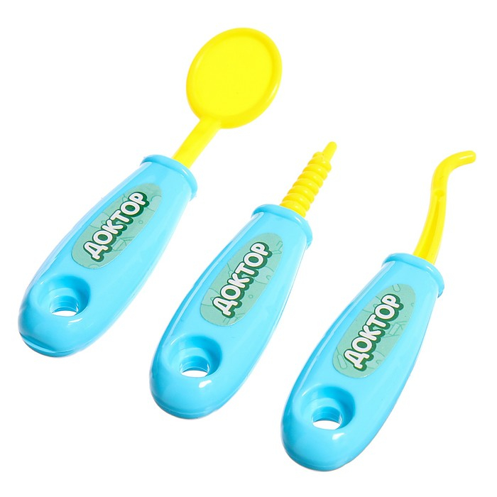 С набором медицинских инструментов у малыша будет всё необходимое, чтобы вылечить зубки куклам и плюшевым зверям. Ребёнок с удовольствием проведёт осмотр, установит пломбы и сделает уколы — совсем как настоящий стоматолог!