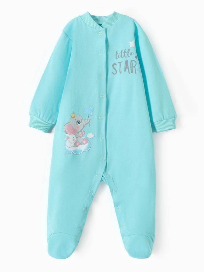 Комбинезон детский с закрытыми ножками "Слоник", цвет мятный, рост 62