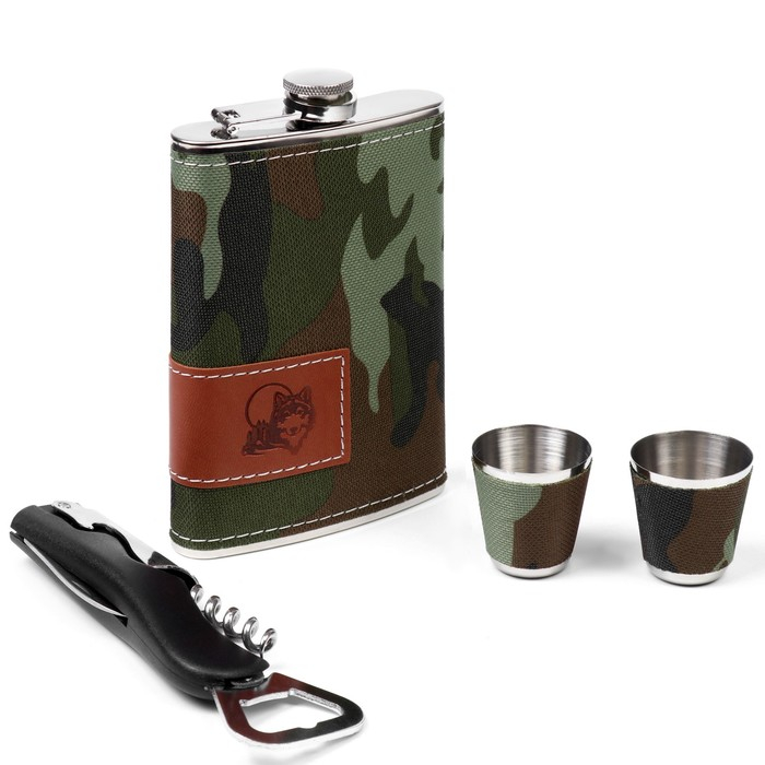 Подарочный набор 4 в 1 "Хаки": фляжка 270 мл, нож сомелье, 2 стопки, 17 х 23 см