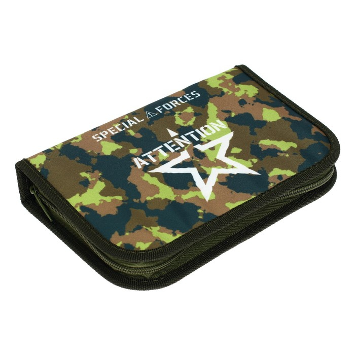 Пенал 1 секция, 130 х 210 х 40 мм, 2 откидные планки, тканевый, Calligrata TOP, Content "Камуфляж"