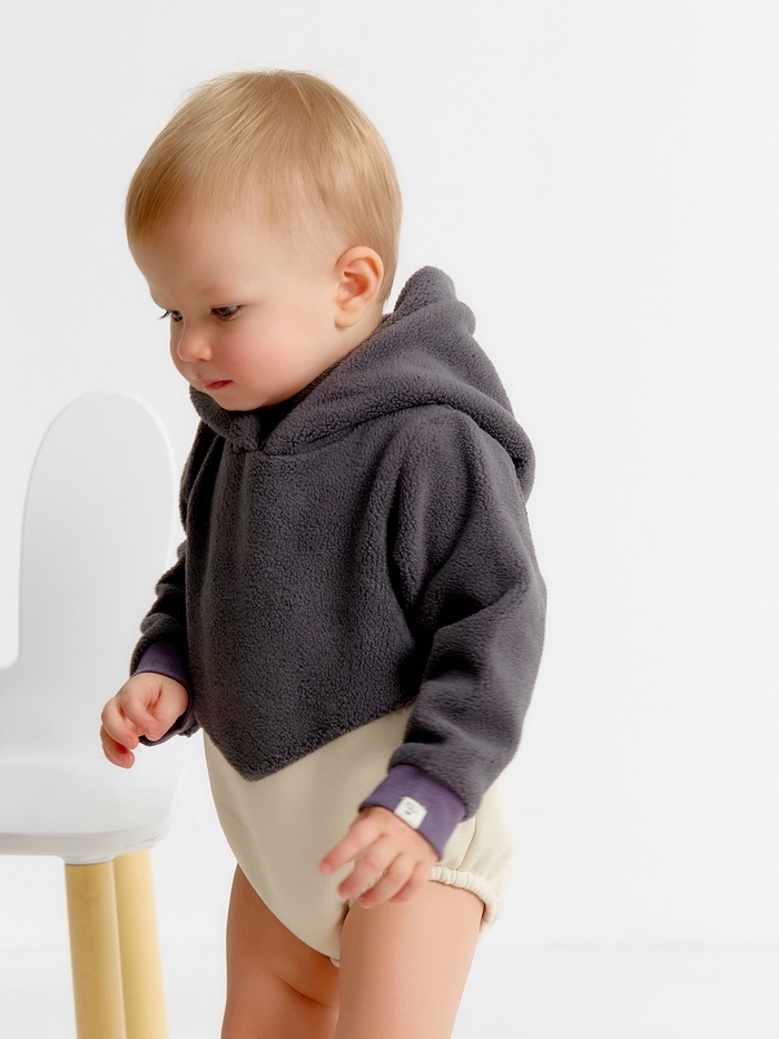 Худи-боди детское MINAKU, цвет графит/экрю, рост 62-68