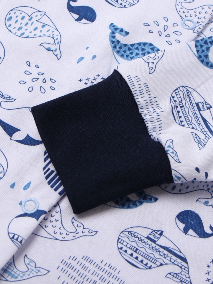 Комбинезон детский с закрытыми ножками "Киты", цвет белый/синий, рост 62 см