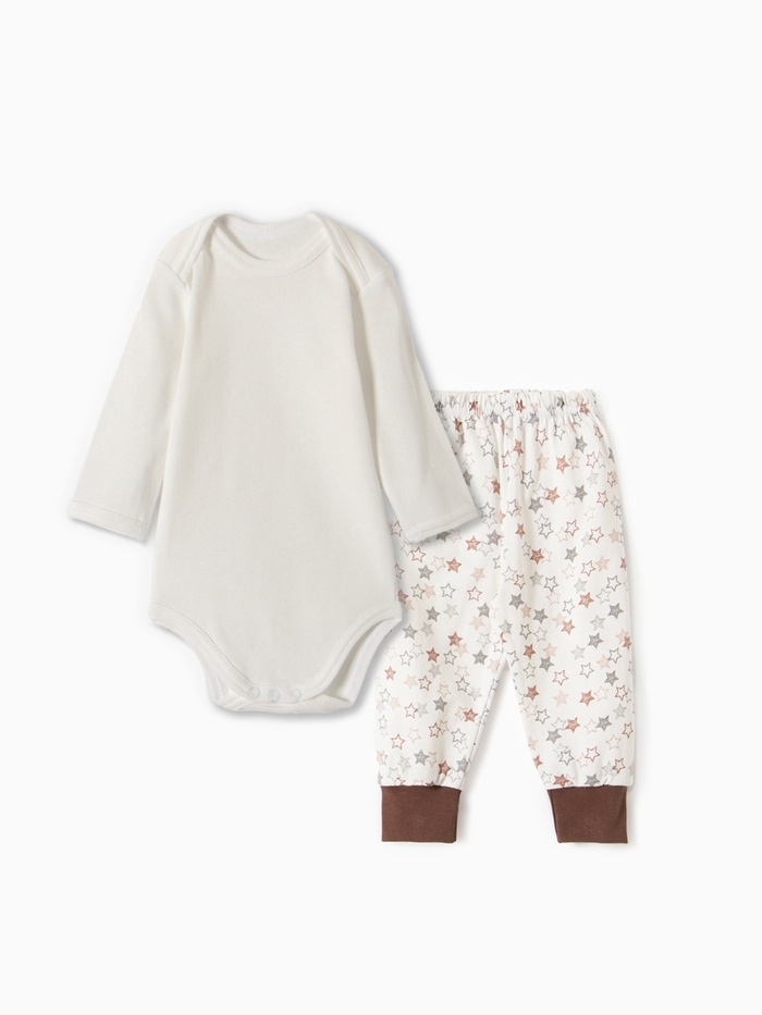 Комплект для новорожденного (боди/штанишки) "Звездочки", цвет бежевый, рост 68 см